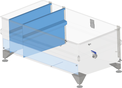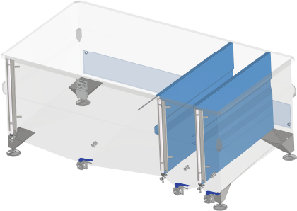 The Grape Juice Separation Basin is an open-top, multi-chambered stainless steel vessel designed for high-efficiency fractional juice collection. Specifically engineered to fit beneath a grape press, this basin allows for the immediate segregation of juice as it is extracted, preventing the mixing of high-acid free-run juice with more phenolic later pressings.