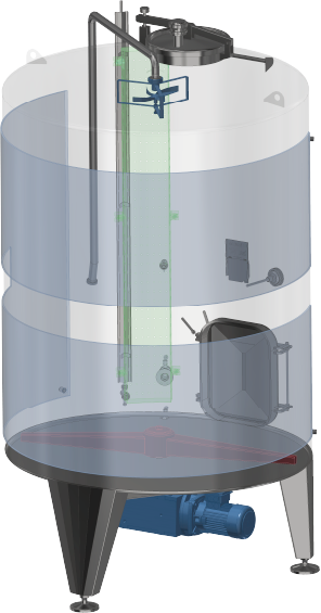 The closed tank was initially designed for the wine industry and intended as a storage and fermentation vessel. Since then, it received many design upgrades. Now, the closed tank is suitable for storage, fermentation and mixing of any sanitary liquid or powder.