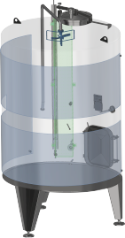 Additional systems improve mixing and discharge. Pneumatic agitation gently mixes the must with bubbles from the bottom of the tank, while rotating paddles help remove pomace after fermentation.